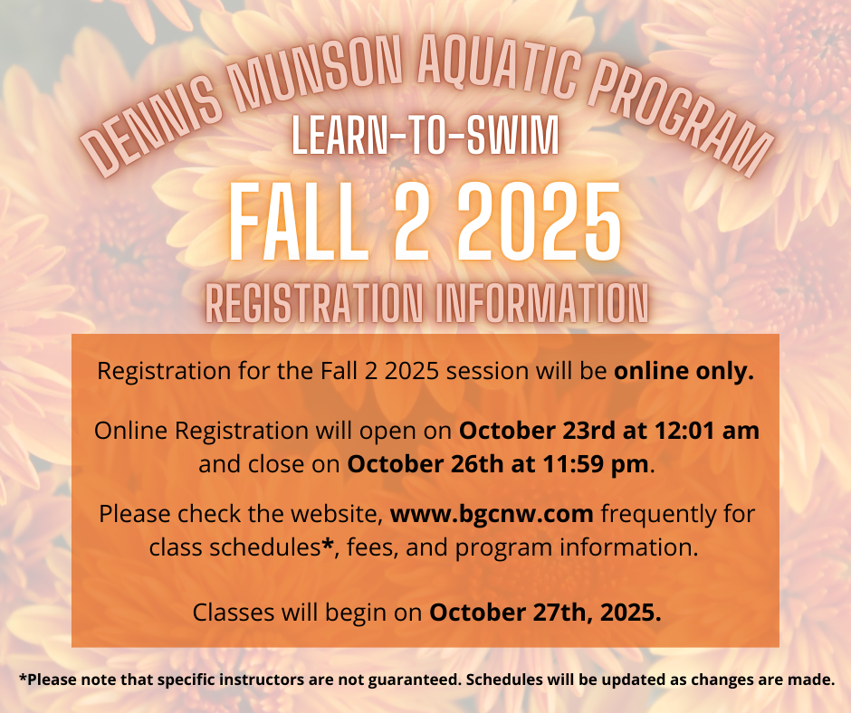 Registration for the Fall 2 2025 session will open on October 23rd at 12:01am. Please check the website frequently for updates regarding schedules & fees.