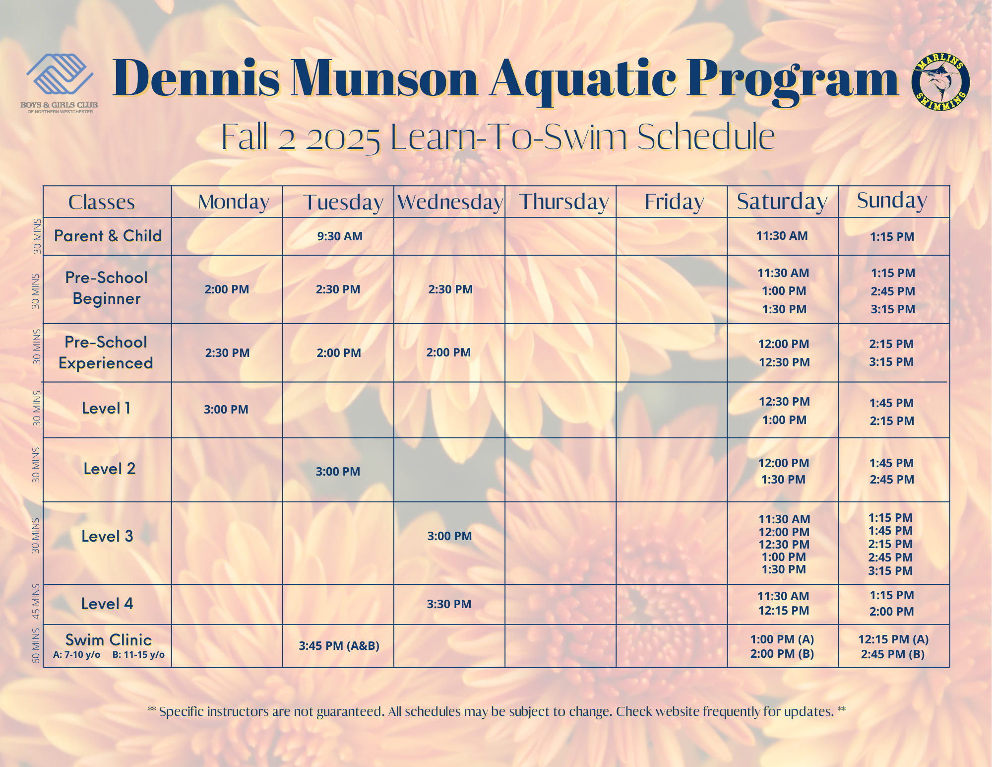 Registration for the Fall 2 2025 session will open on October 23rd at 12:01am. Please check the website frequently for updates regarding schedules & fees.