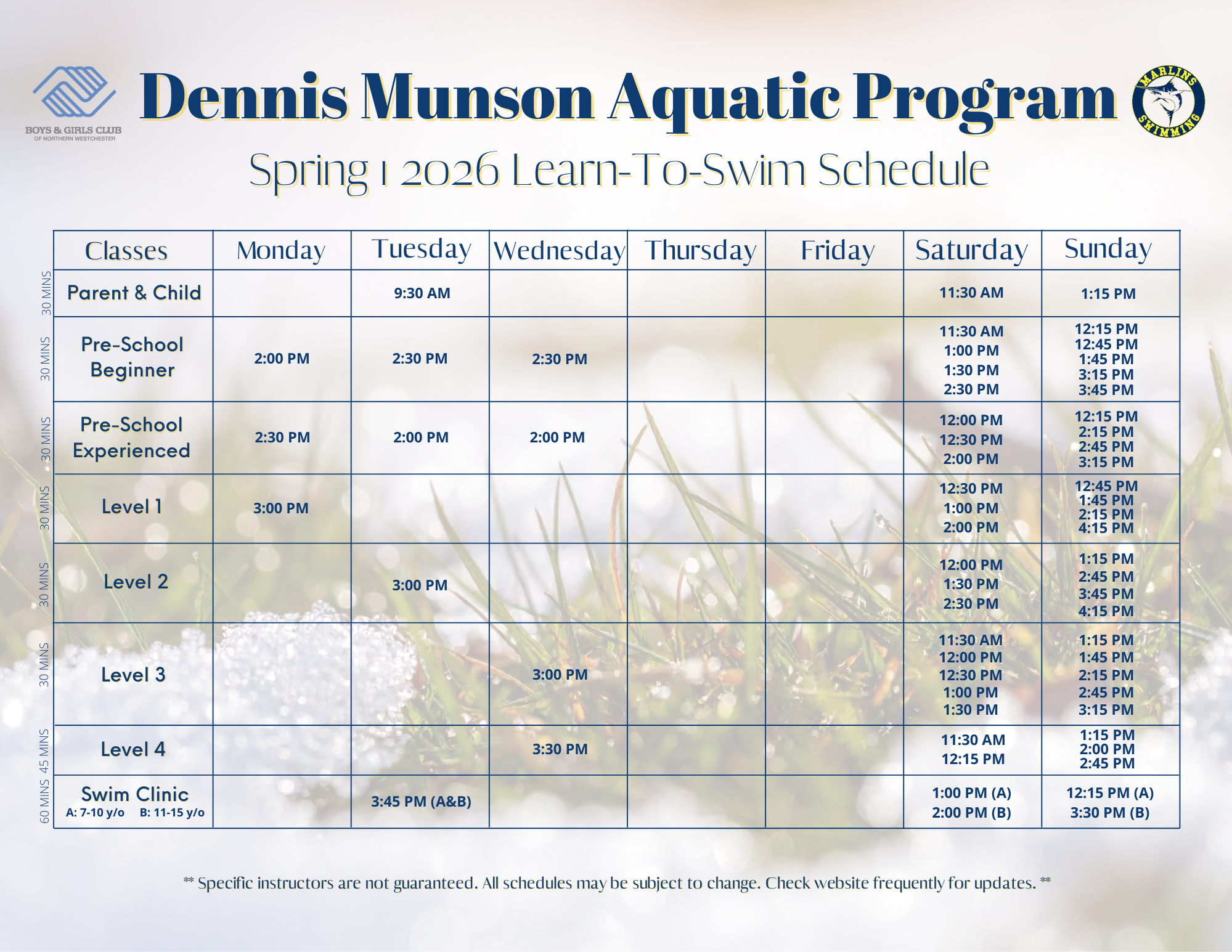 Upcoming Learn-To-Swim Sessions: